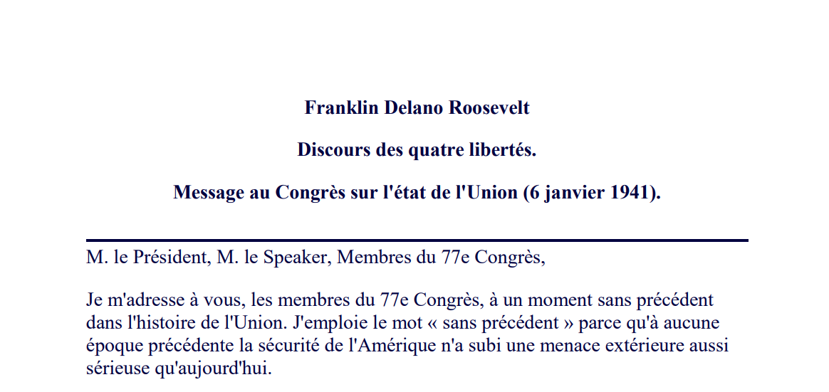 Elément de preuve n° 3 : L’Amérique Empire ou le discours des 4 libertés de 1941 – digithèque université de droit Perpignan MJP