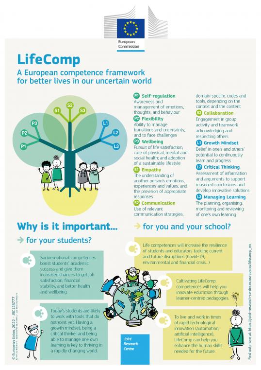 - Commission européenne « LifeComp: The European framework for the personal, social and learning to learn key competence » YRL : https://joint-research-centre.ec.europa.eu/lifecomp_en